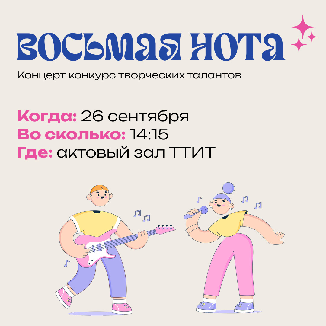 26 сентября в актовом зале ТТИТ. Зал для зрителей открыт с 14.00. Начало концерта в 14.15