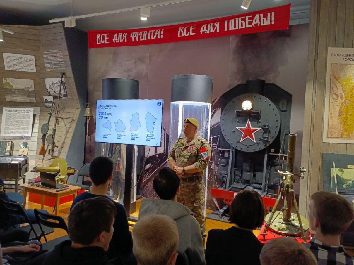 Адрес для приема документов от абитуриентов: ✉ priem@tomtit.tomsk.ru30 сентября 2025, в День воссоединения Новороссии с Россией в Томском областном краеведческом музее наши студенты встретились с Анатолием Александровичем Стрюком, старшим сержантом, ветераном СВО и депутатом Думы г. Томска и председателем регионального штаба Комитета семей воинов Отечества Дианой Викторовной Смолевой.