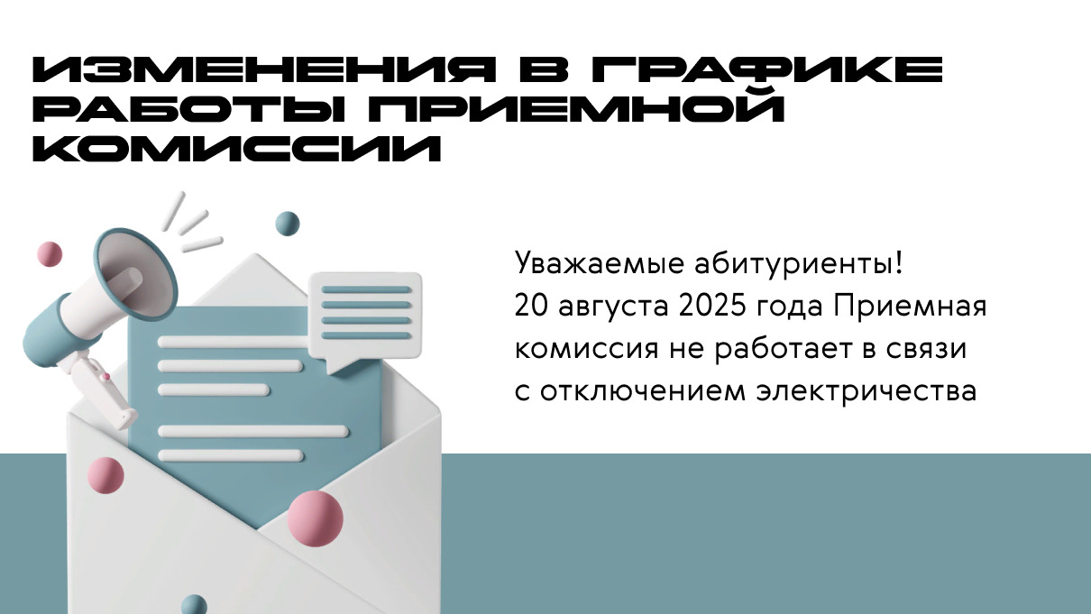 20 августа Приемная комиссия ТТИТ не работает в связи с отключением электричества.